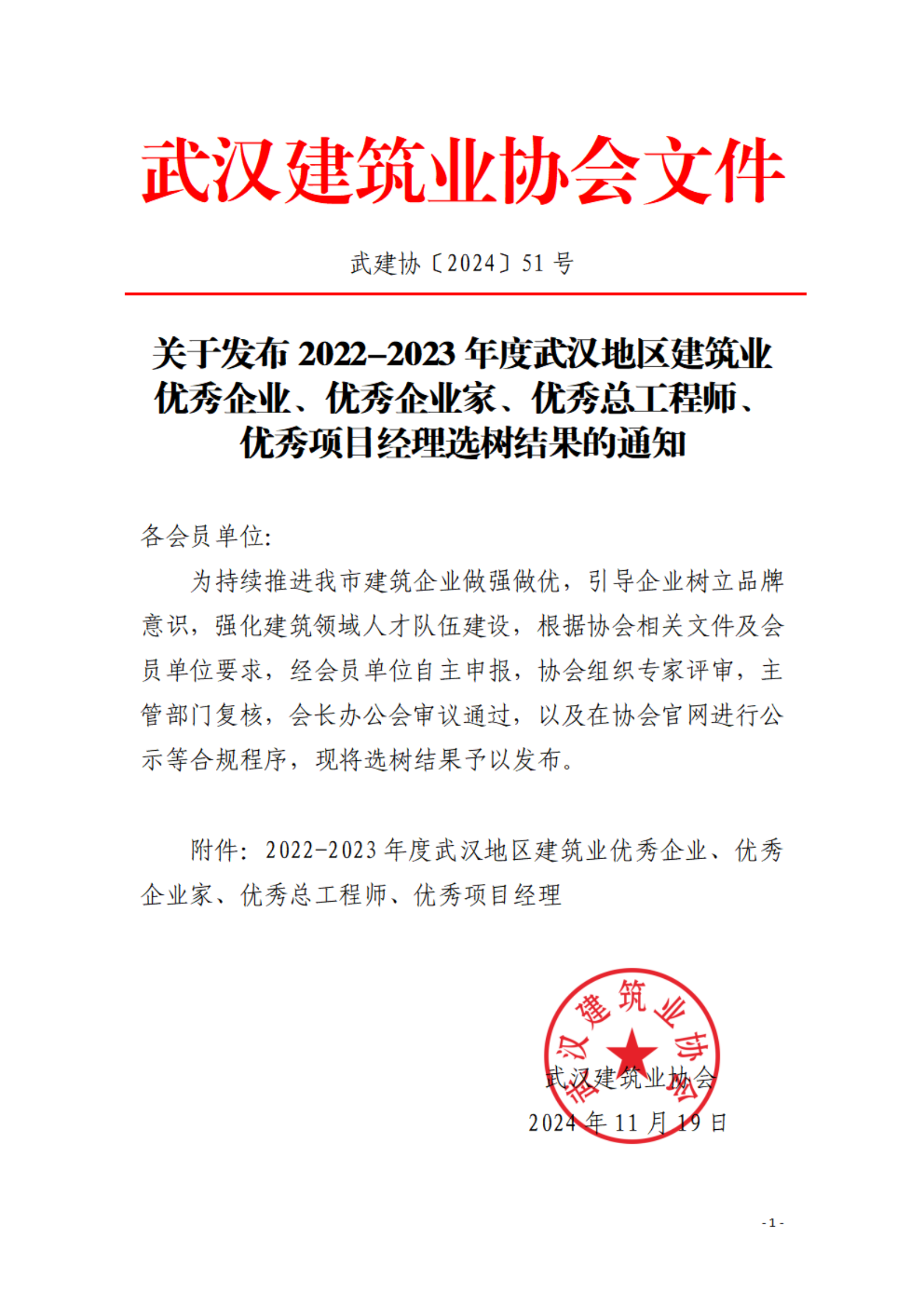 • 湖北省建工第五建設有限公司榮獲2022-2023年度武漢地區建筑業“四優”